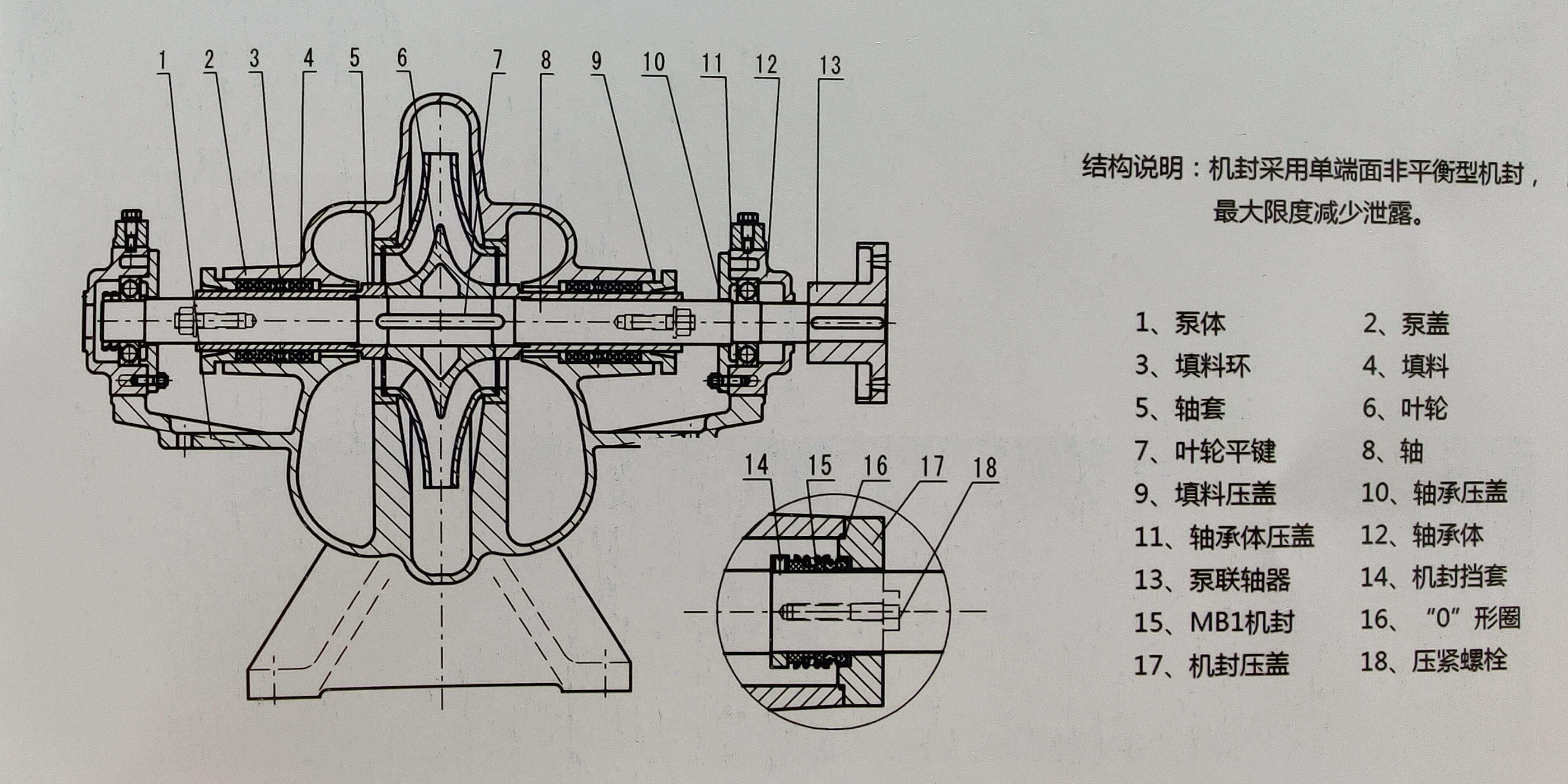 1、釆用优质机械密封,注入式软填料密封结构通用,互换性好,不锈刚轴套,避免锈蚀,维护方便,填料空间大,更换维护方便。